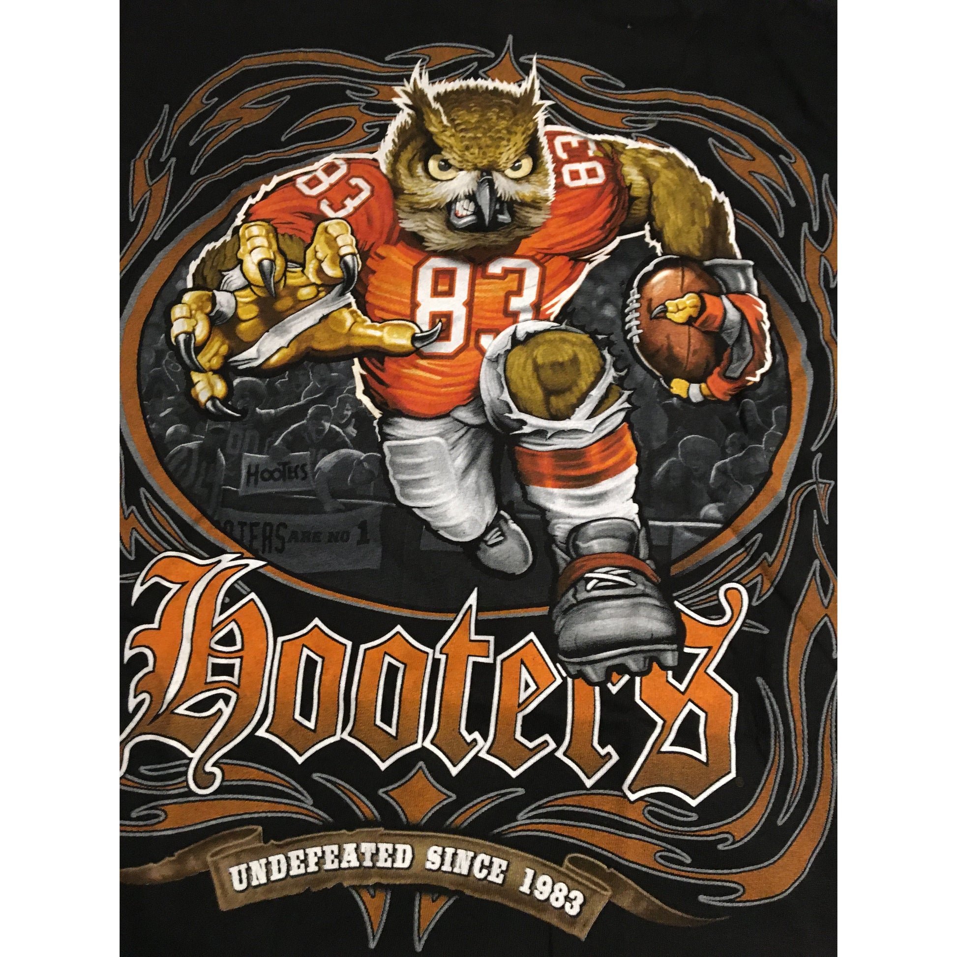 "Invaincu depuis 1983" sur le devant ainsi que sur le dos avec le hibou running back